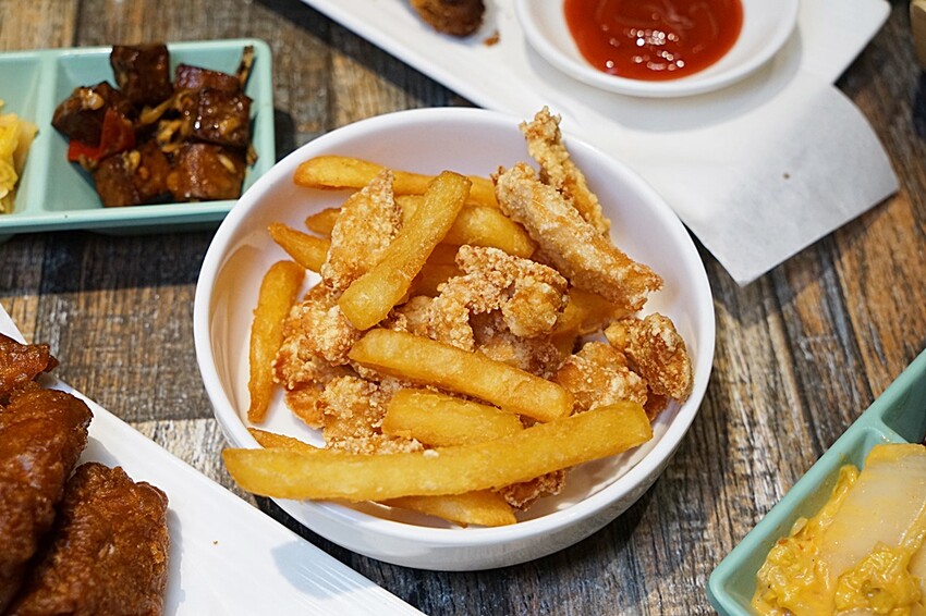 蔵前魚薯條,採用無刺虱目魚塊搭配酥脆的薯條,薯條帶著甜香不用沾醬我就覺得粉好吃囉!!