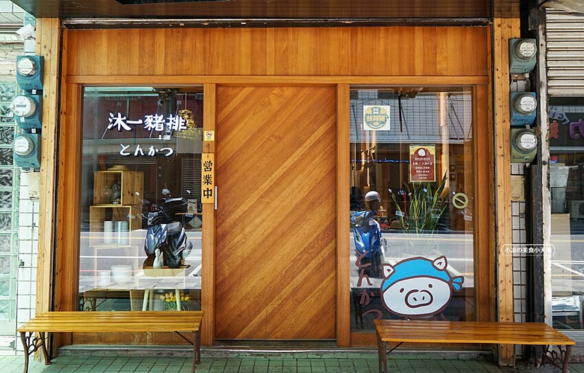 店面有著日式風格的外觀加上沐一豬排的可愛LOGO,人多需等待時,還有提供椅子讓顧客可稍作休息一下呢