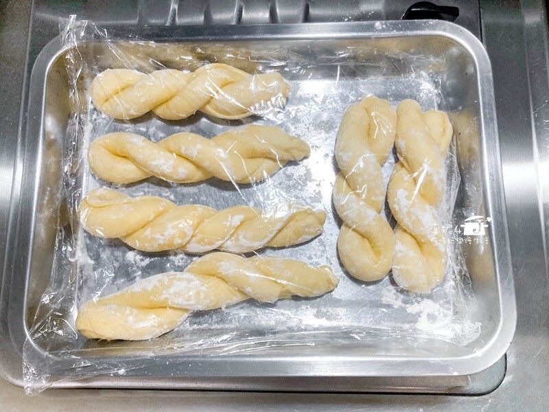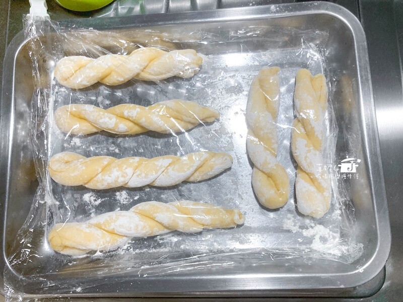 4.塑形後的麻花捲要再次鬆弛10分鐘到體積膨脹1~1.5倍大時才能下鍋炸
