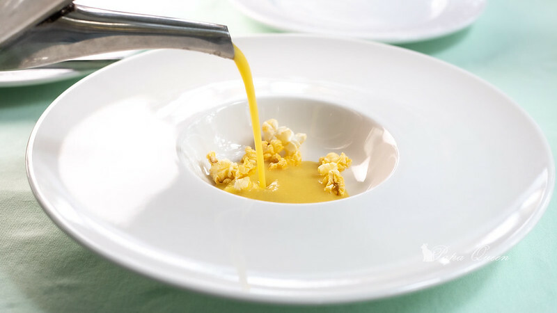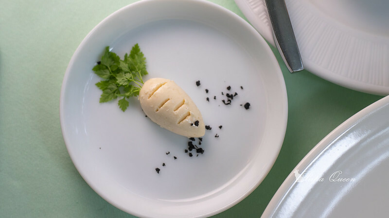 法餐總會出現這種泡泡料理,泡泡有如跳跳糖般在口中輕輕震動著..這才發現泡泡下是餃子耶!