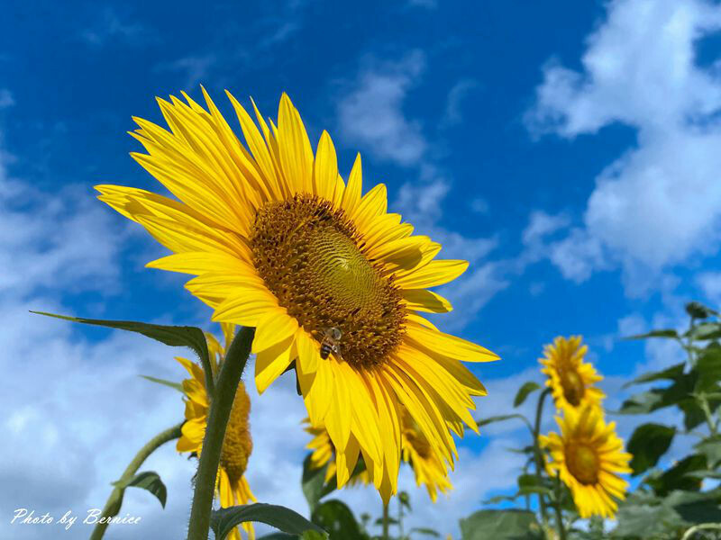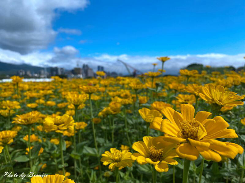 一得知花海再現時,趁著台北為數不多的好天氣趕緊出門去獵花;這回範圍真的好大,黃澄澄一大片,再配上些許藍天真的超好拍的,這美景也吸引不少旅人前來,向日葵、百日草現開得正美;花海範圍大不用人擠人的也能輕鬆與花兒合影