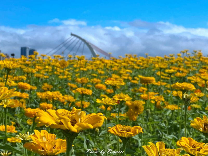 本次的主角有百日草、向日葵及紫背狼尾草,百日草與向日葵都是黃色的,而且花海的範圍比先前都來得大,一整個超美超好拍的,快找個好天來大佳河濱公園拍美照吧
