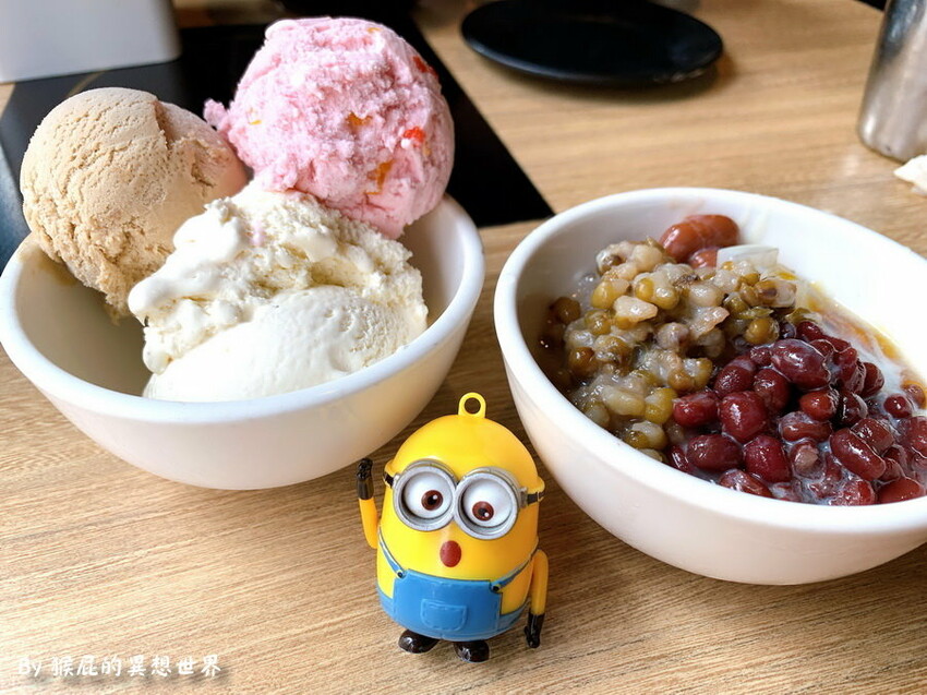 沙拉旁邊還有小菜,像是毛豆、黑豆等也有提供,另外還有剉冰跟冰淇淋,剉冰配料我都很愛,紅豆、綠豆、大豆、椰果還有煉乳加好加滿,還有提供檸檬愛玉跟黑糖仙草,甜品種類也很豐富欸。