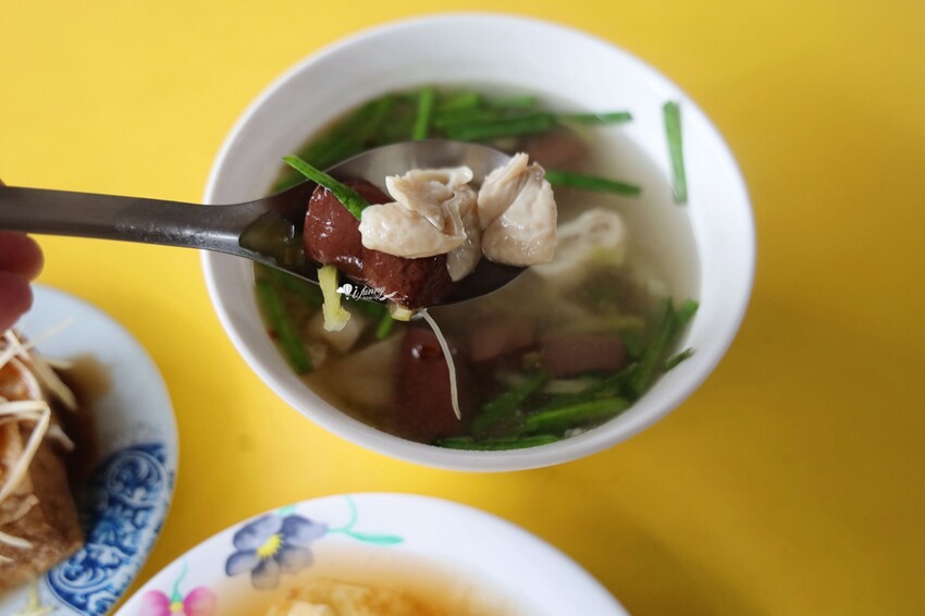 大腸處理得很乾淨,加上豬血、韭菜段、酸菜,湯頭喝來很清甜,這樣一碗40元,真的很便宜!