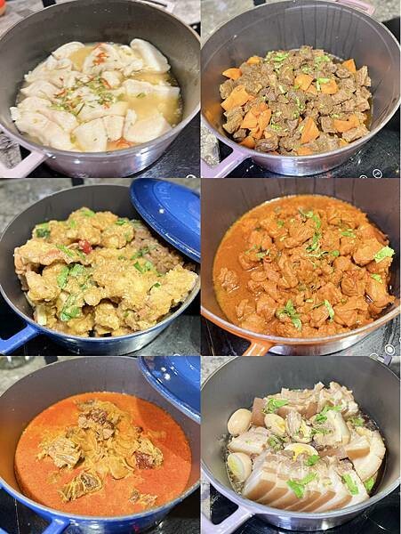 仁當牛肉、泰式烤鴨咖哩、新加坡辣椒蟹、印尼斑斕糕…等,