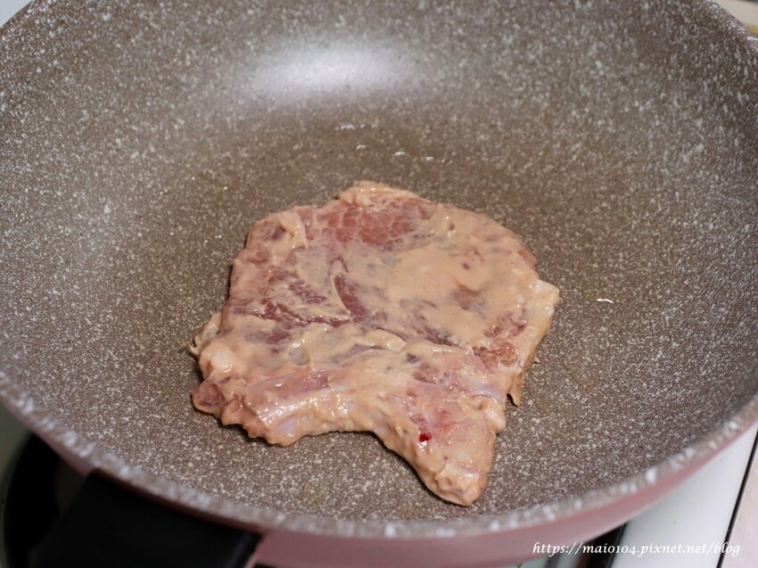煎:完全退冰後,加入少許油熱鍋後,將排骨油煎至兩面金黃色即可