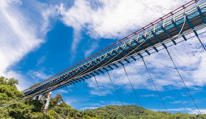 第三代新溪口吊橋全長303米跨溪大橋,角板山、溪口部落,高低落差23公尺。