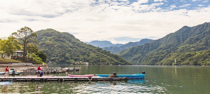 結束預訂的獨木舟、sup行程後,我們在騎了一小段自行車後,回到石阿姆坪碼頭,碼頭上有幾家船務公司,提供不同行程不同價位的遊船行程。以我們參加的阿姆坪到新溪口吊橋為例每人是300/元。