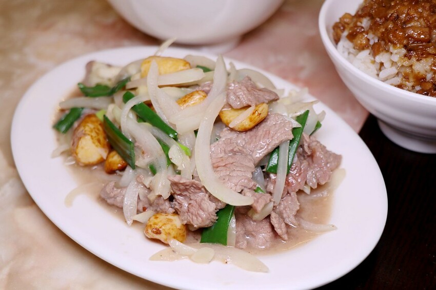 蒜頭牛肉除了大顆爆香蒜頭之外還加入的洋蔥提升整體甜味及脆口感