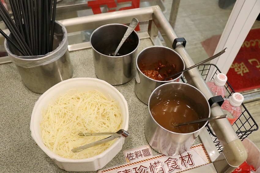 一旁有小碗.餐具.醬料等都是自助取用