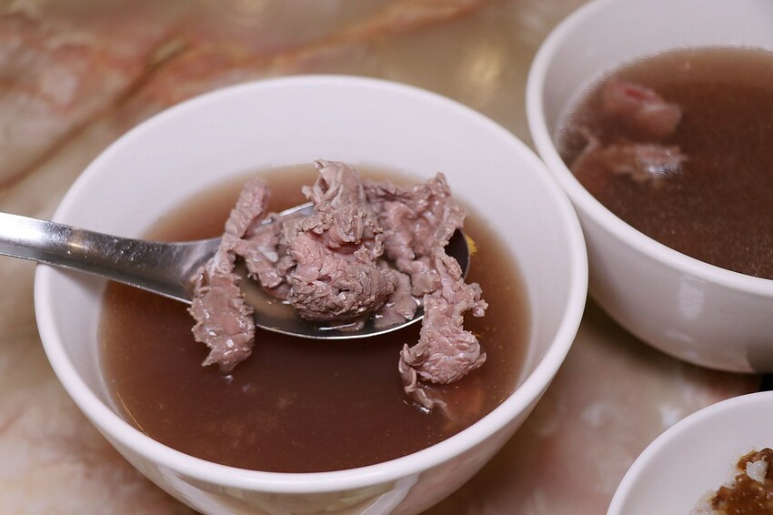 新鮮現燙的溫體牛肉湯清爽鮮甜,滿滿牛肉香