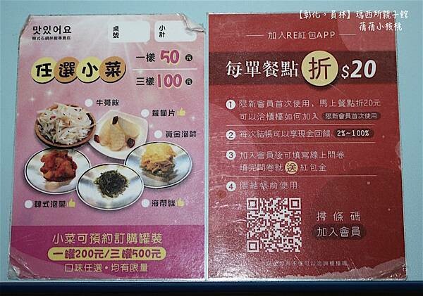 一旁還貼心的備有幼兒使用的兒童餐椅,對於艾琳家有小孩的家庭而言,這樣乾淨、舒適的親子館,內用真的讓人覺得舒服,不過,有時候想要在家和家人一起輕鬆地享用餐點時,外帶也很方便,還有每份主餐折$20元的優惠,加碼還送特調氣泡水一罐和小菜一份。