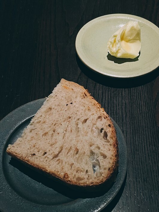 自製的酸麵包內部濕潤柔軟,表皮酥脆,每次都咀嚼都帶出更重的麵粉香。用餐過程中如果還想吃可以請服務生續。