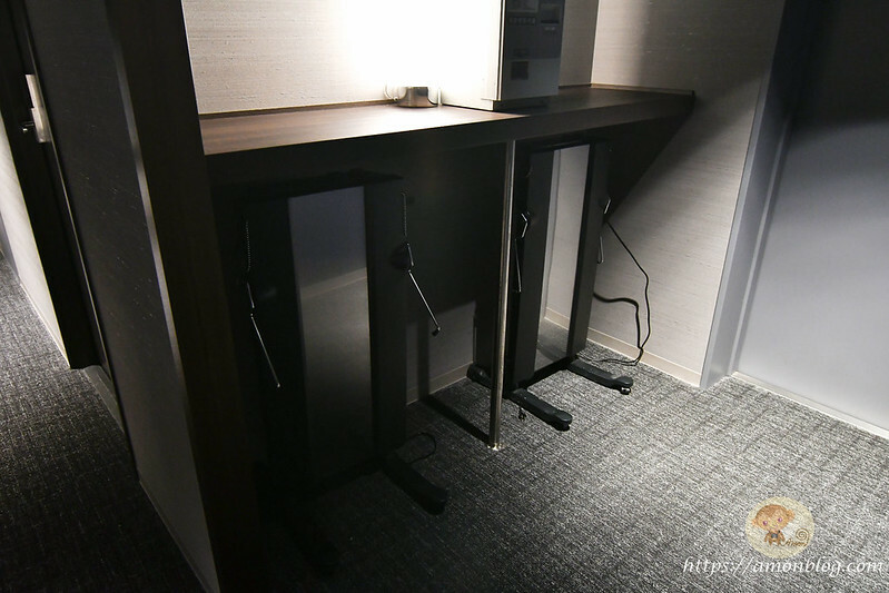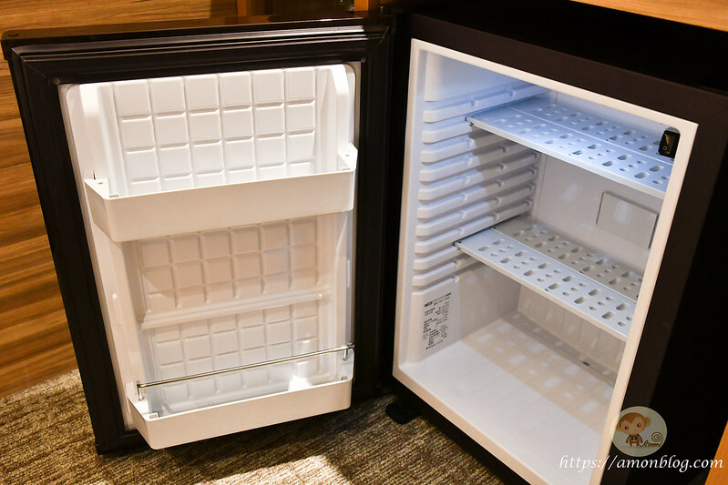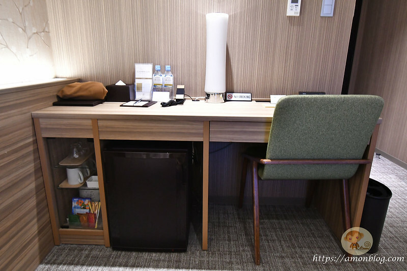 在房間的靠房門側有一張大書桌和L行走道,冰箱、礦泉水;茶具組也都放置在此,如果想要整理行李的話,就可以在這邊攤開行李箱來整理。
