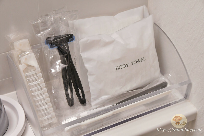 牙刷組、刮鬍刀、梳子、洗澡巾等,如果還有需要其他的乳液、化妝水等,就要到一樓櫃台旁拿嚕。