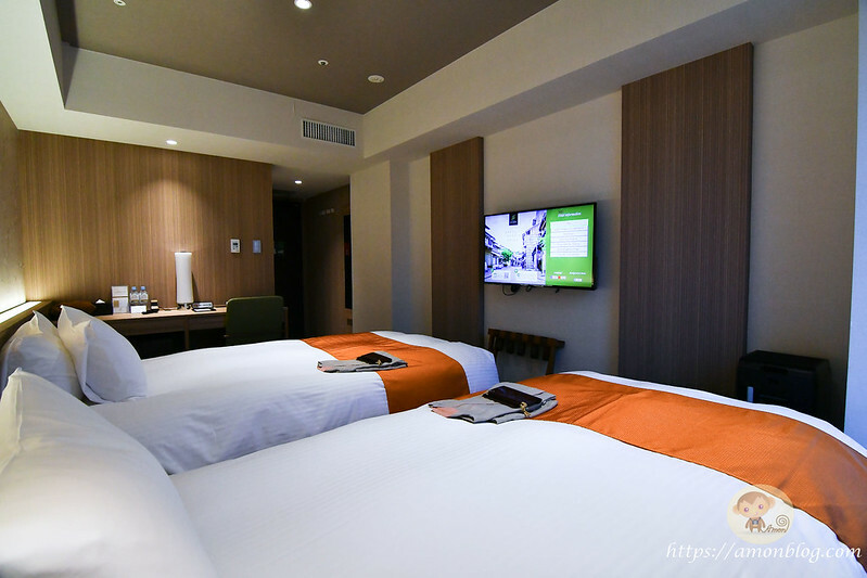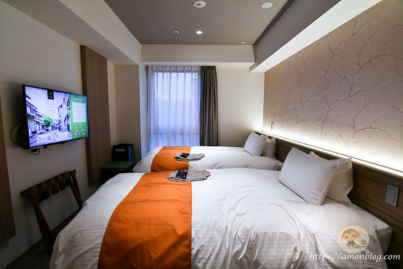 客房房型還蠻多種的,從單人房、豪華單人房、標準雙人房、標準雙床房、中等雙床房、高級床房、豪華雙床房、標準三人房、高級三人房等都有,客房數也很多,適合各種前來京都旅遊的遊客,這次入住的是標準雙床房,房間大小是20平方公尺,一晚大約是台幣$1600,以房間空間來說,這價格算是很便宜,CP值很高的房型。房間內有免費的WIFI無線網路,但訊號不是很穩,建議還是自備行動網卡,還蠻推薦這次購買的DJB暢日卡,可以無限流量吃到飽,而且訊號超級穩和網速超快。、看Booking優惠價