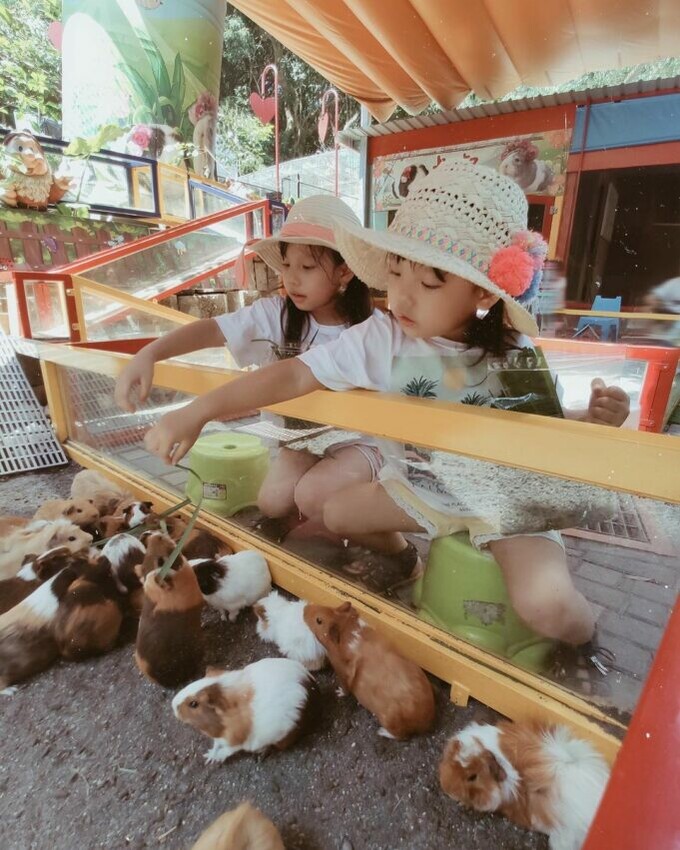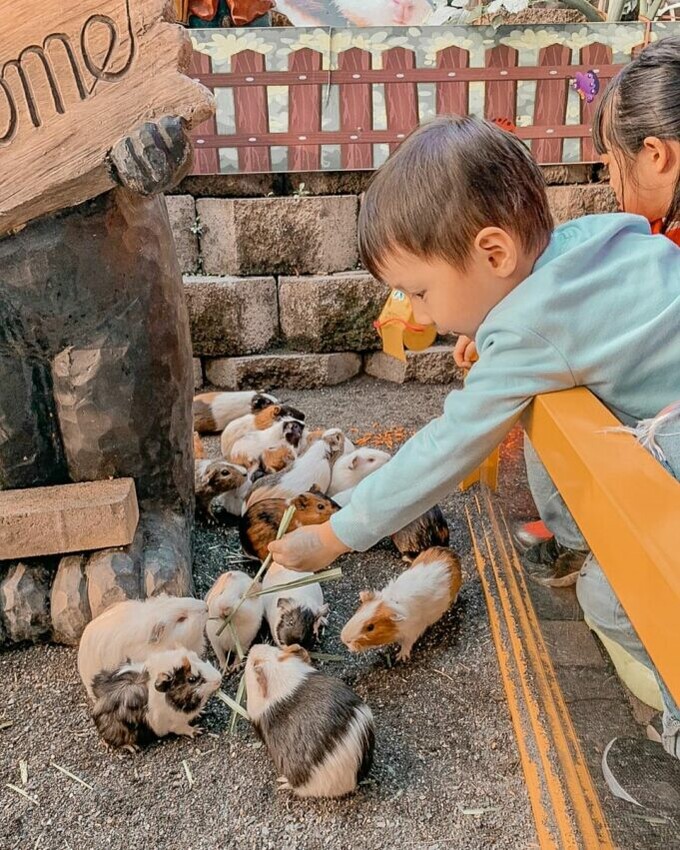走過彩色階梯後就來到天竺鼠的家了,超多天竺鼠都在這一區等著遊客餵食,看著牠們吃牧草的感覺很療癒。這區最特別的是農場設置的天空步道,不管從哪個角度都看的到天竺鼠走過,也可以讓小朋友更完整地觀察天竺鼠,週末09:00-11:00還有可愛的天竺鼠出場秀哦~