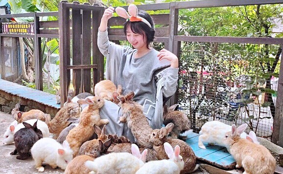 戶外開放式的兔子主題區不但有仿自然的山洞、土堆、洞穴,能讓兔子們活蹦亂跳,各式花色的可愛兔子帶著水汪汪的大眼,只要拿著飼料,貪吃的兔寶寶們就會開始包圍你,在你身旁跳來跳去,可愛度直接加乘上去了。兔子區還有可愛童話造景的陳設,就好像走到愛麗絲童話世界,每個角落都可以發現可愛的兔子。