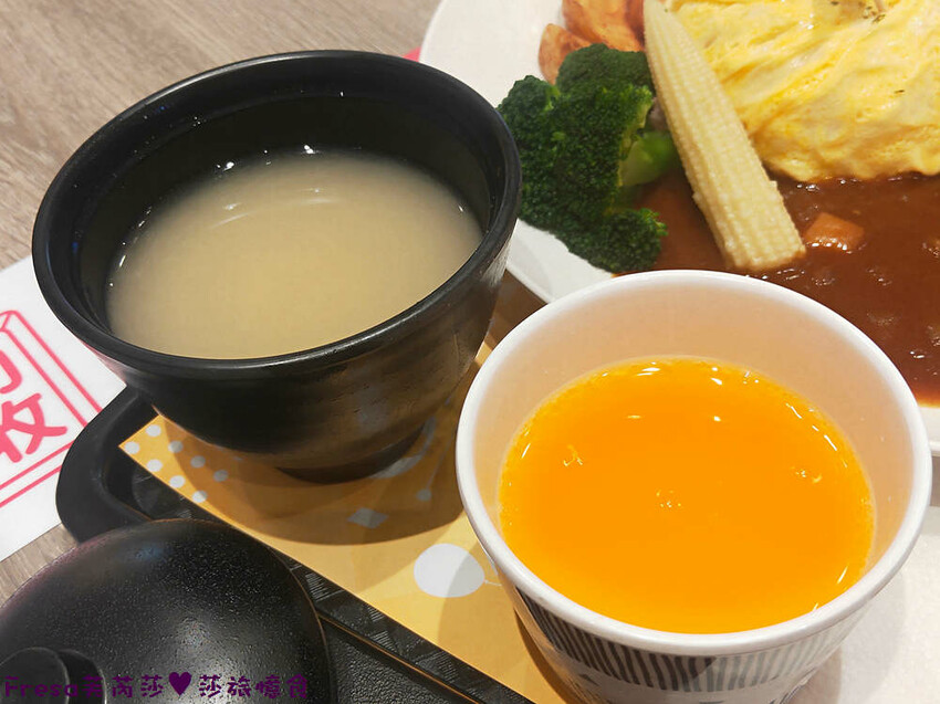 餐盤除了主餐盤,還有味噌湯和飲品.