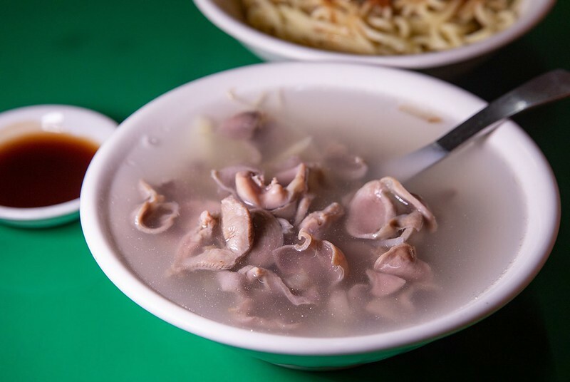 上桌後我的第一個視覺是「乾淨」大概是我見過最沒有雜質的下水湯,入口的第一個味覺跟五郎一樣是「清爽」,恐必也是我喝過最清爽的一碗下水湯,除了非常迷人的薑香外,那湯沒有渾厚的下水味,反而是一點點清甜的內臟味,值得上「好喝」兩個字,但如果你偏好是那種風味濃厚的下水湯,也許會覺得沒滋沒味也說不定。另外,這裡的下水,尤其是「雞胗」不同於其他店家的脆硬,而是連我這牙口不好的人都覺得的軟脆,加上處理得非常乾淨,我想這一碗下水非常試合沒吃過下水,不敢吃下水湯的朋友。當然,不止日本人,也包含台灣人。