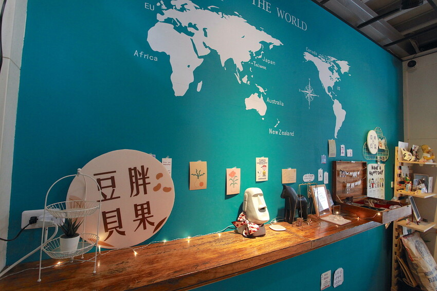吧台前牆面有世界地圖與收藏品供欣賞。