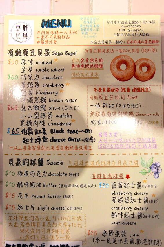 今天小高騎著摩托車在台南市尋找美食,路過這間貝果專賣店吸引我進去品嚐,這家「豆胖貝果Bean Bun Bagel」營業至今已有四年歷史,店家是由母女兩人共同經營中,親切老闆娘說他們貝果是純天然,且選用美國有機黃豆來製作,令我驚豔店家貝果除了美味之外,店面後方還有超過百年老宅廢墟,把這廢墟打造出靜謐用餐空間,很好拍又美味定價很親民,值得樂天小高極力推薦給您品嚐。