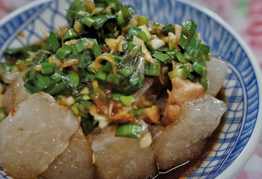 真心推薦愛吃韭菜的人一定要點米腸加菜,米腸切開後韭菜加到爆;而煙熏雞肉捲也是我很喜歡,加辣吃更是絕!也要說阿鄭伯古早味小吃的醬料真的很保有著傳統客家風味,愛吃韭菜的你們可千萬不要錯過這家。