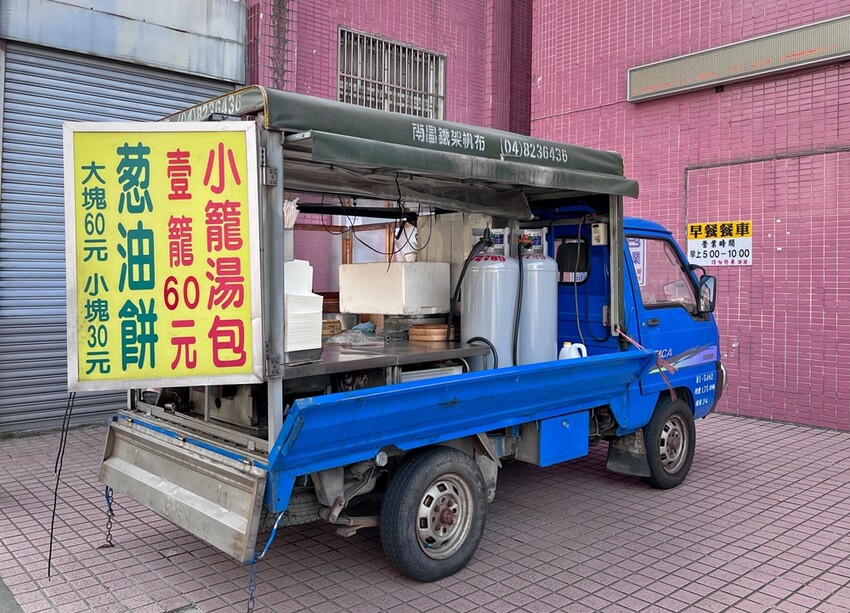 三義農會小籠包餐車就在三義農會前,小籠包一籠是60元,蔥油餅有分小塊30元以及大塊60元。