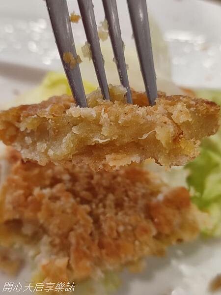 炸物口感香酥,花枝圈和雞塊的口感及口味都和葷食的一模一樣,如果沒說,肯定吃不出來