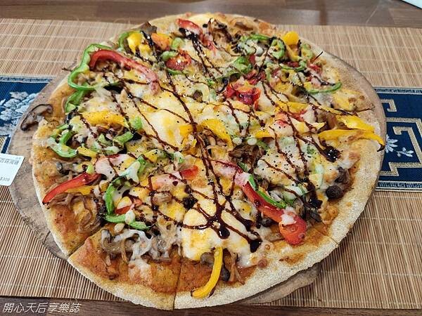 一上桌,散發陣陣香味,上面滿滿的鮮蔬、堅果、菇類,色彩繽紛好吸睛,而且9吋大,讓我們吃不完,都各剩一半打包回家吃