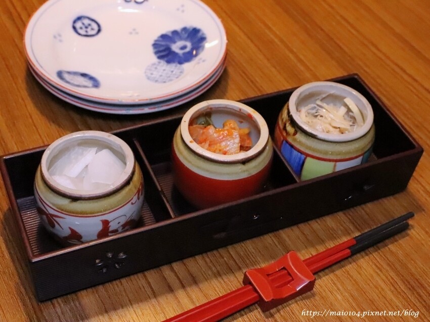 用餐提供小菜,有柚子大根、泡菜及牛蒡絲