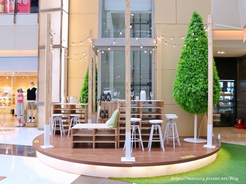 時下很夯的露營風,在大江購物中心的中庭也能感受到那種在綠地與大自然為伍的氛圍