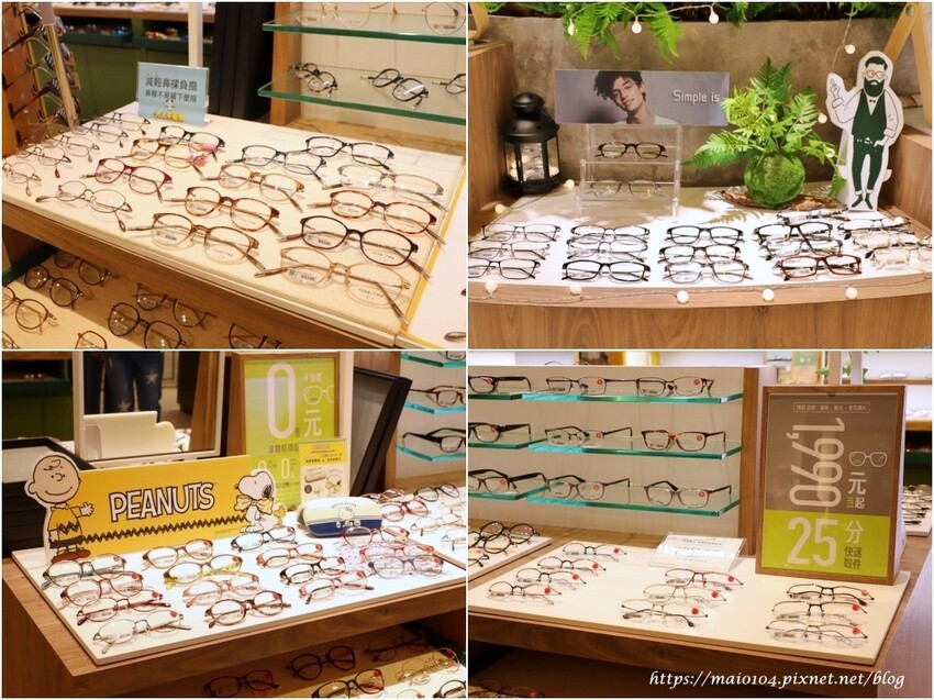 還有與Snoopy史努比聯名款的眼鏡,主要以史努比為設計但漫畫中的夥伴也都會出現在眼鏡的細節裡