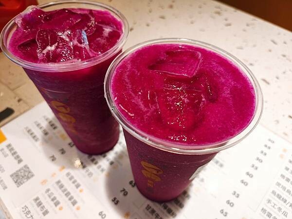 火龍果與芭樂的融合,居然不會互搶果香味,火龍果的甜芭樂的香氣都同時撲鼻而來,新鮮果汁現打也很好喝。