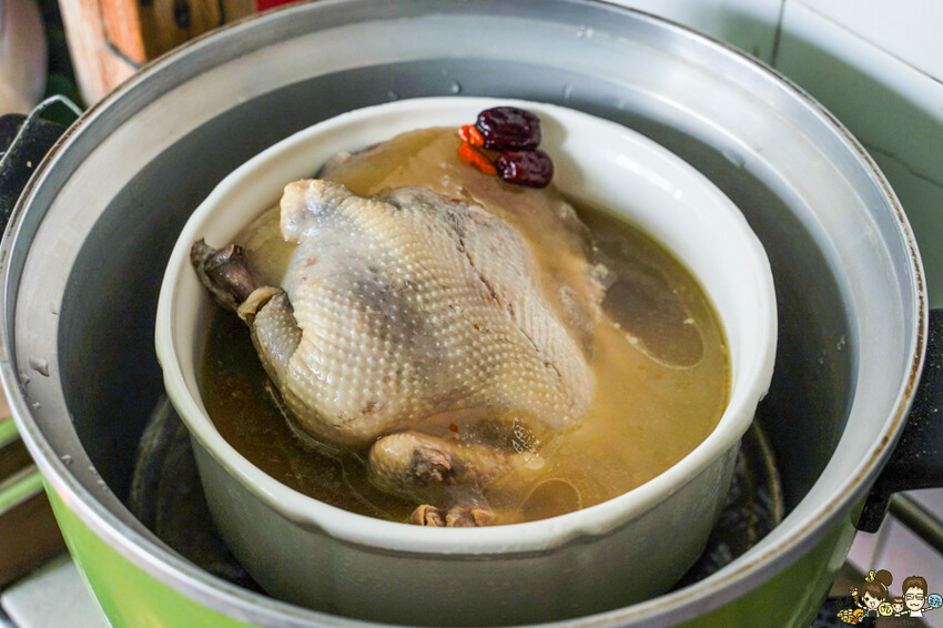 一整尾雞,直接倒入甕裡面,隔水加熱~
