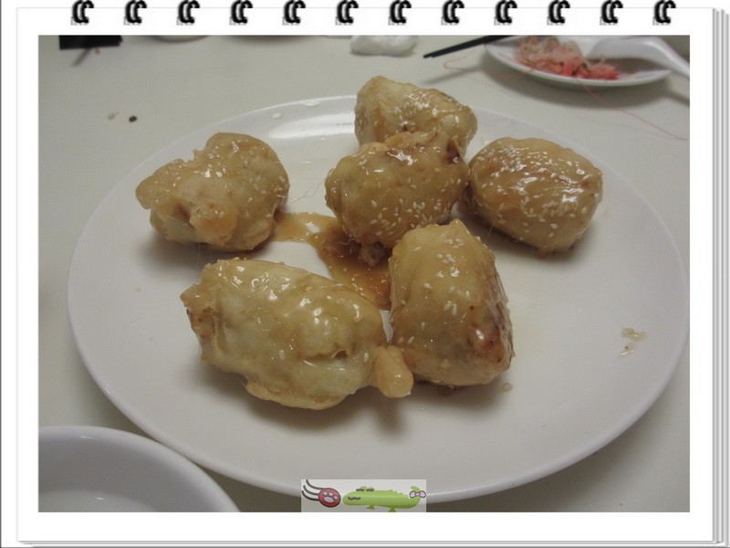 這個的味道還蠻不錯的,香蕉中夾著棗泥,裹上粉後去炸一下,然後再加上麥芽糖,熱呼呼的吃起來外酥內軟,不過因為裡面的香蕉、棗泥都是甜的,加上外面的糖絲,真是甜上加甜的一道甜點呀!@@