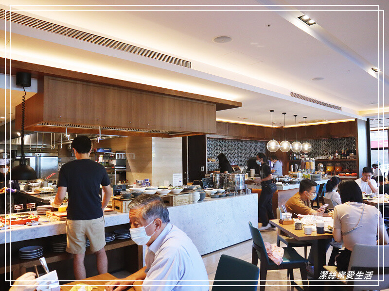疫情關係,除了在座位上用餐,其餘在夾菜時候,一律要戴著手套及口罩,在進餐廳前有個自動戴手套機,有點有趣XD。