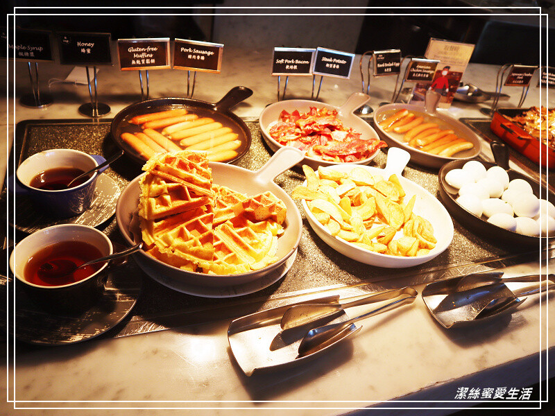 先來看看有什麼菜色~首先看到的是經典美式早餐區,有鬆餅/培根/熱狗/水煮蛋。
