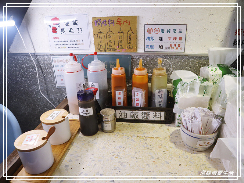 角落是餐具醬料櫃,調味料種類頗多,還貼心附上了說明,大家依自己喜好來加。