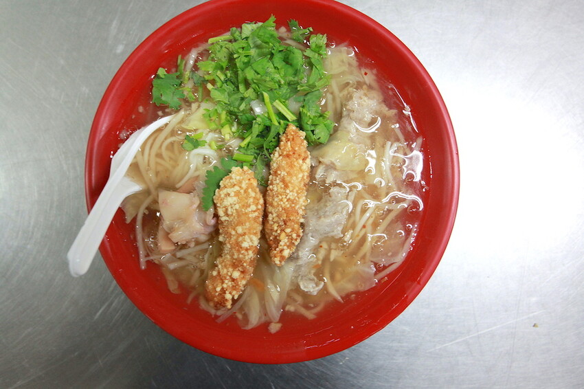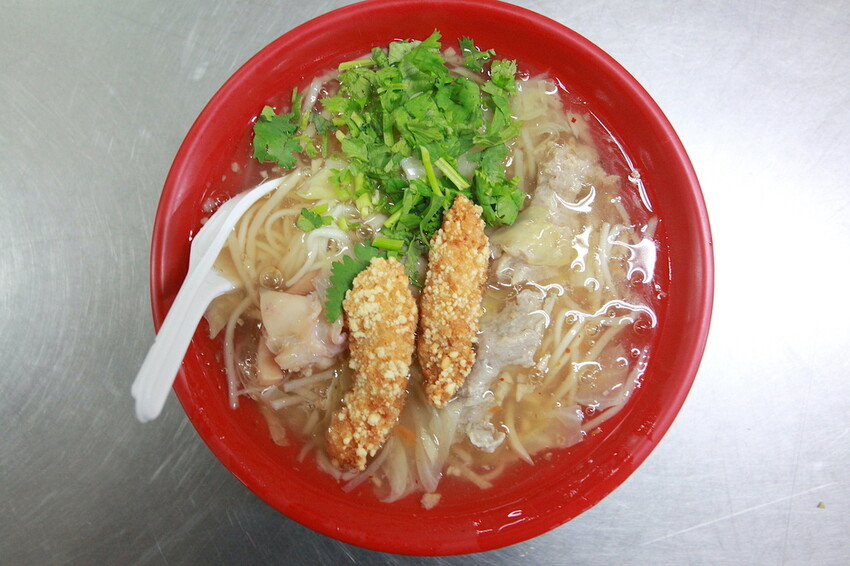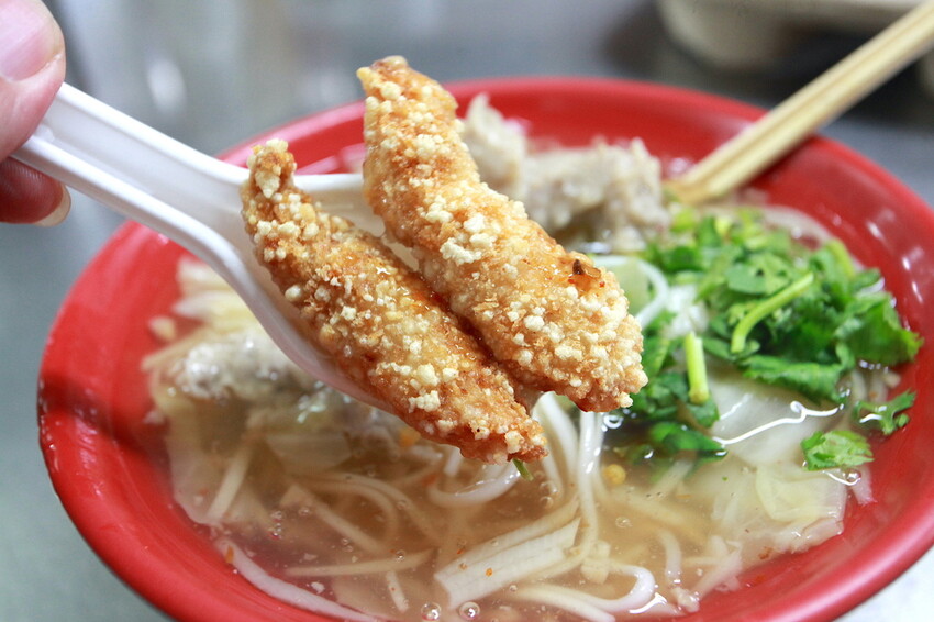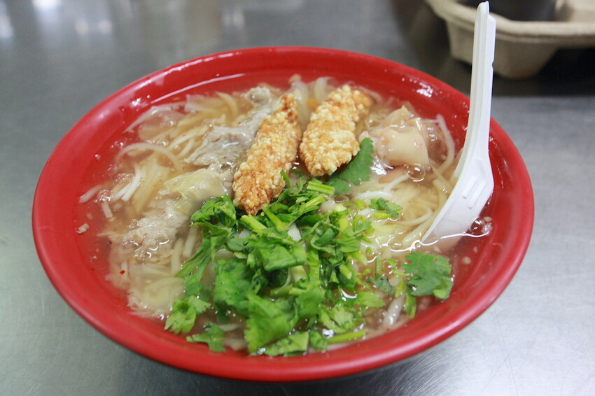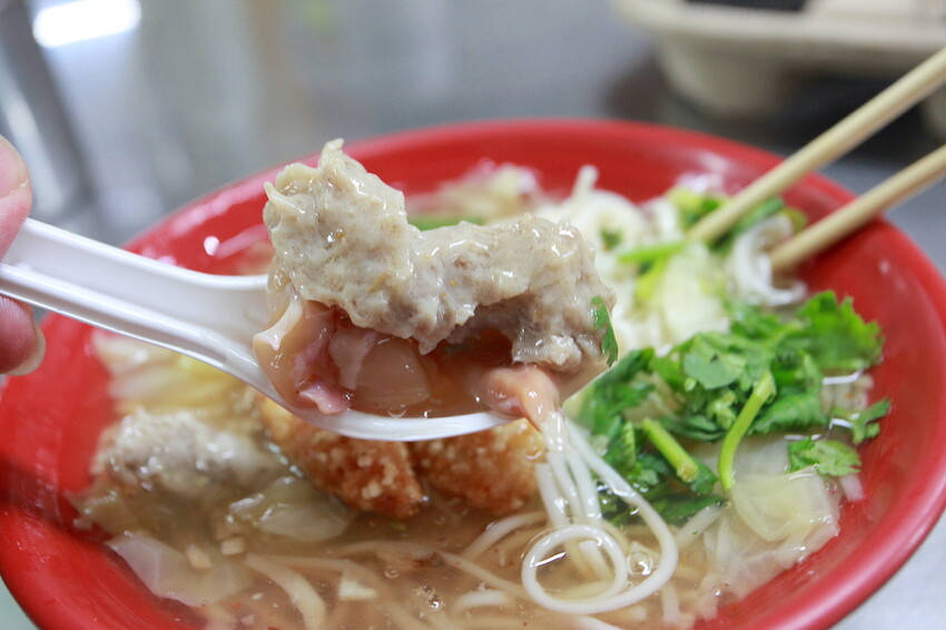 小高建議直接點綜合麵最划算,因爲一次可吃到土魠魚、魷魚及肉羹等三種口味,這綜合麵舖上滿滿香菜來提味,不敢吃香菜者要告訴老闆娘喔!