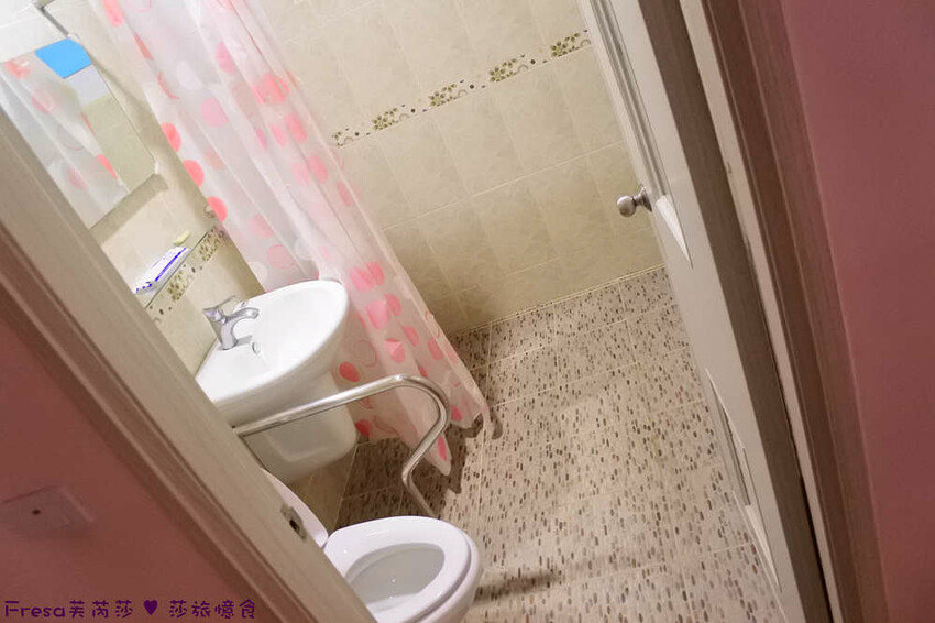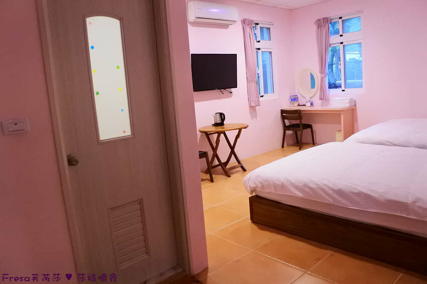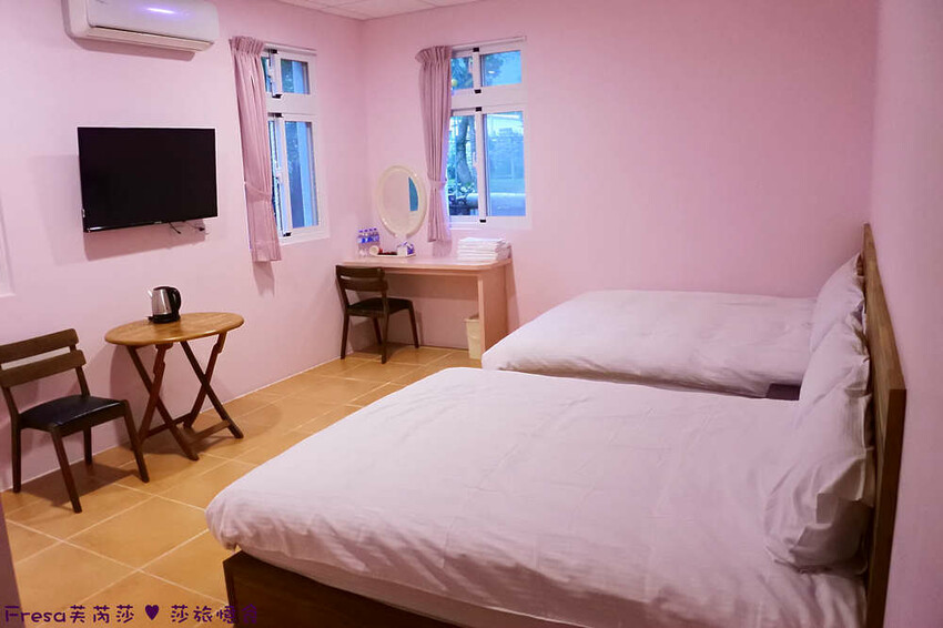 另一間一樓房型一樣是四人套房,粉色壁面.