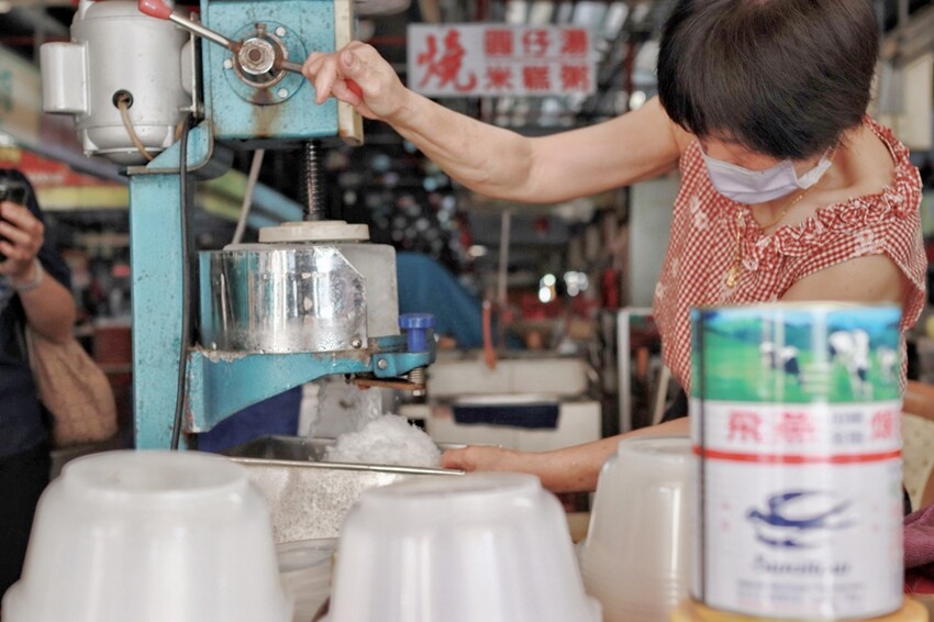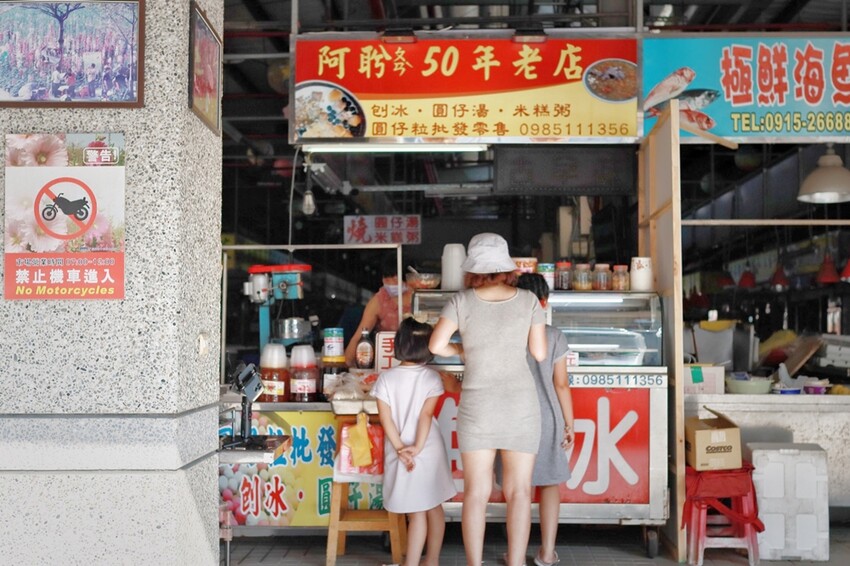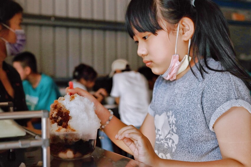 準備離開學甲時,蔬果姐妹又吵著想吃冰,於是就帶她們到學甲公有市場內吃阿盻50年老店,有黑糖刨冰、米糕粥、紅豆湯等可以點選,價位超級便宜,老闆娘也真的很親切熱情!
