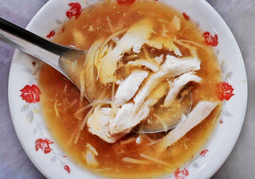 這天因為吃不下,所以僅點了雞肉羹跟米糕,雞肉羹甜鹹甜鹹的還不錯,雞肉分量給的也算多;米糕就有鹹到,鹹到我們必須配著羹湯來吃。