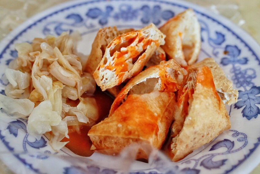 位在學甲慈濟宮旁的這家老字號學甲臭豆腐,是不少在地人都會來買的平價小吃,小份臭豆腐30元,大份50元,素食者可享用。