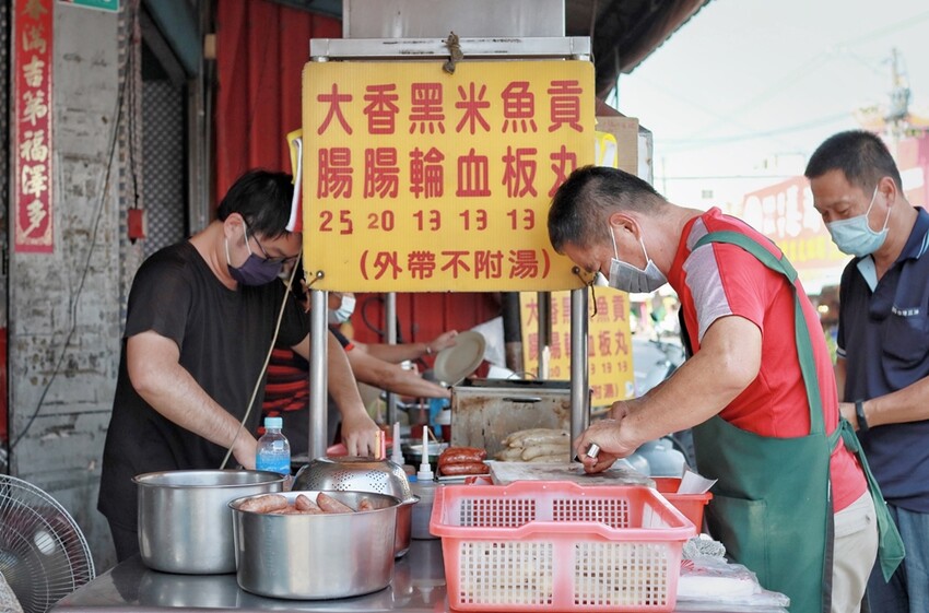 位在慈濟宮附近,就在學甲臭豆腐正對面的” 大腸包小腸,黑輪米血”,原本不在我們這趟來學甲的名單內,是閒晃在中正路上時無意間發現到的在地小吃!