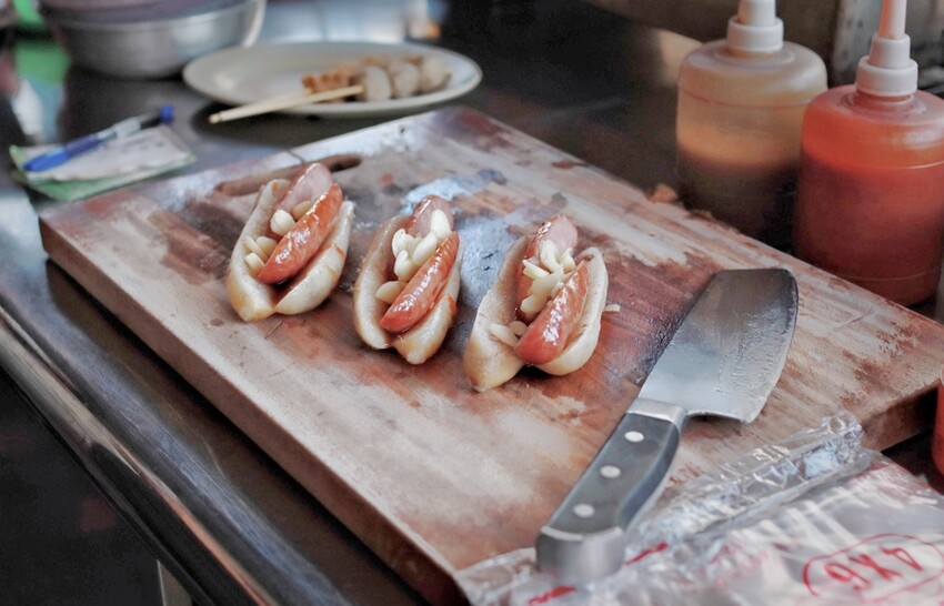 這天我們就只有買一份大腸包小腸,整體來說還算不錯,會將香腸斜切,在上層鋪上不少的蒜片增添風味,至於加辣就沒什麼辣度可言,因為蔬果姐妹都吃得津津有味。
