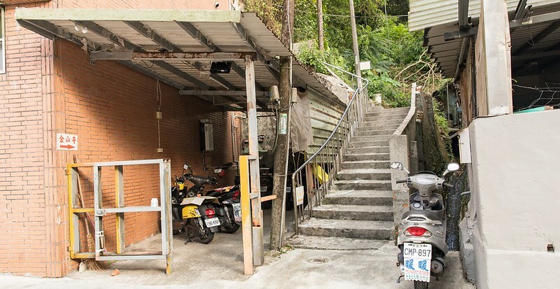 金山街上甚有巷弄風,曲個拐彎盡是紅磚、石牆、石梯,還有自製的機車坡道,讓我想起早年常去作家的姑姑、姑丈家(老大公廟旁),也得爬上一條像這樣,幼時覺得很高、爬得很喘的石梯。