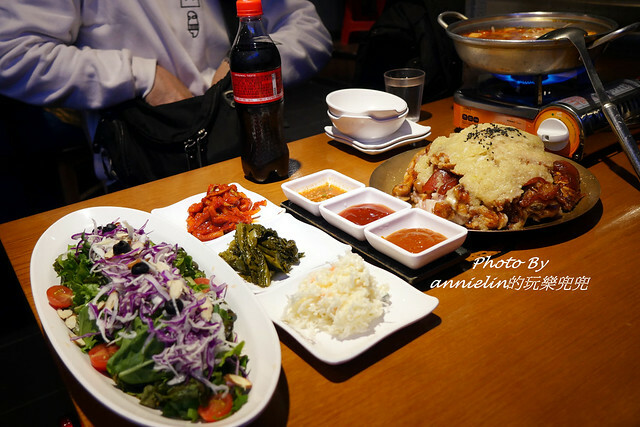 再加上剛剛上面提到的附贈小菜、沙拉和鍋物,這樣就占滿一整桌,
