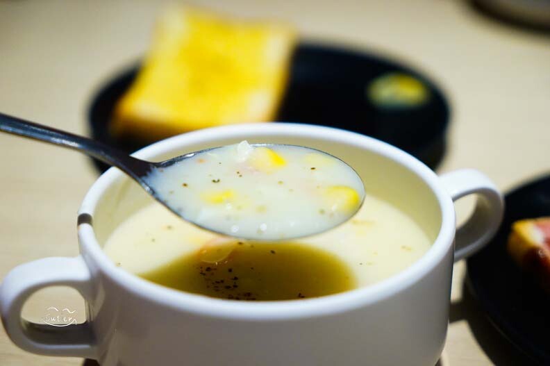 自助吧台提供濃湯、飲品、霜淇淋以及餅乾、烤吐司,可以在等待熱呼呼排餐