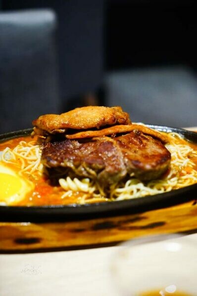 鐵板熱呼呼,端上桌時還會冒著煙,與吃鐵板燒有些許雷同之處,不過不一樣的是在鐵板上霍霍揮鏟的人是張開嘴品嚐美味排餐的自己!